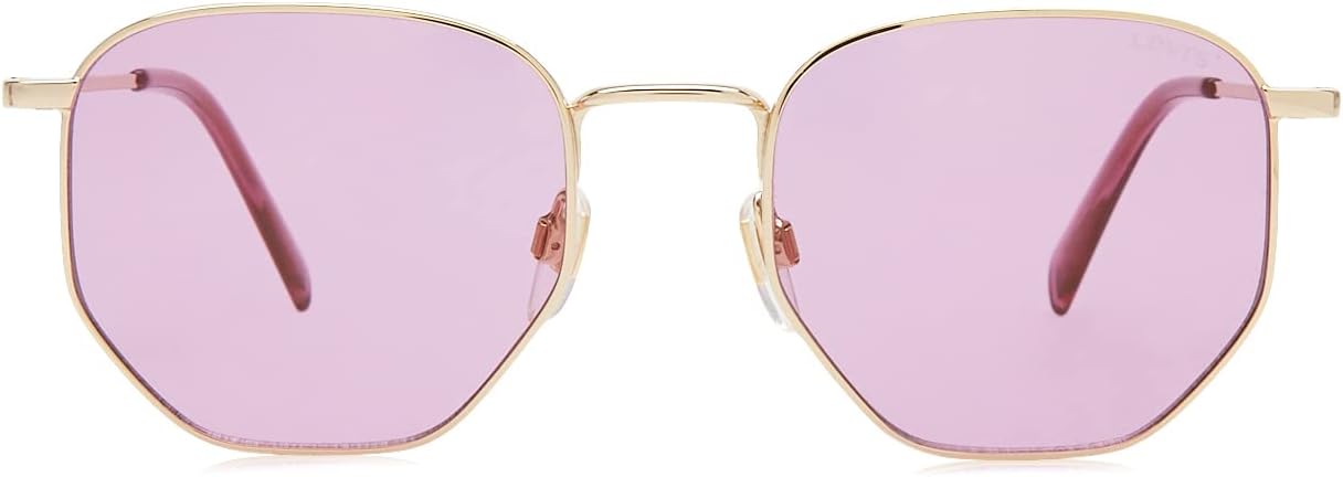 Frame Color: Gold Frame Material: Metal Frame Type: Square Frame Style: Full Rim Gender: Unisex Lens Color: Violet Mirror Lens Material: Plastic Lens Width:51 Lens Height: 45 Temple Length: 145 Polarization: Non-polarized Model Year: 2022